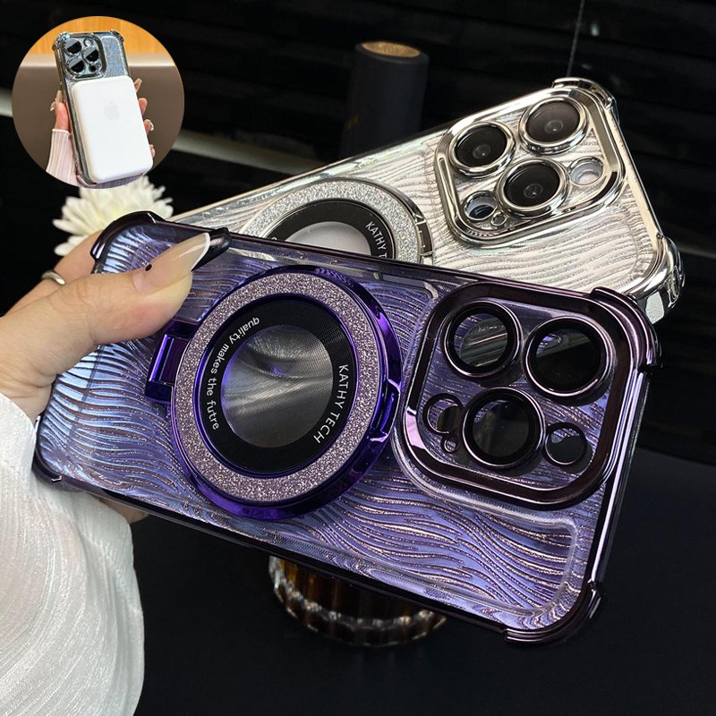 ラメ入り波線模様iPhoneケース【スタンド付き・四角エアバッグ耐衝撃】